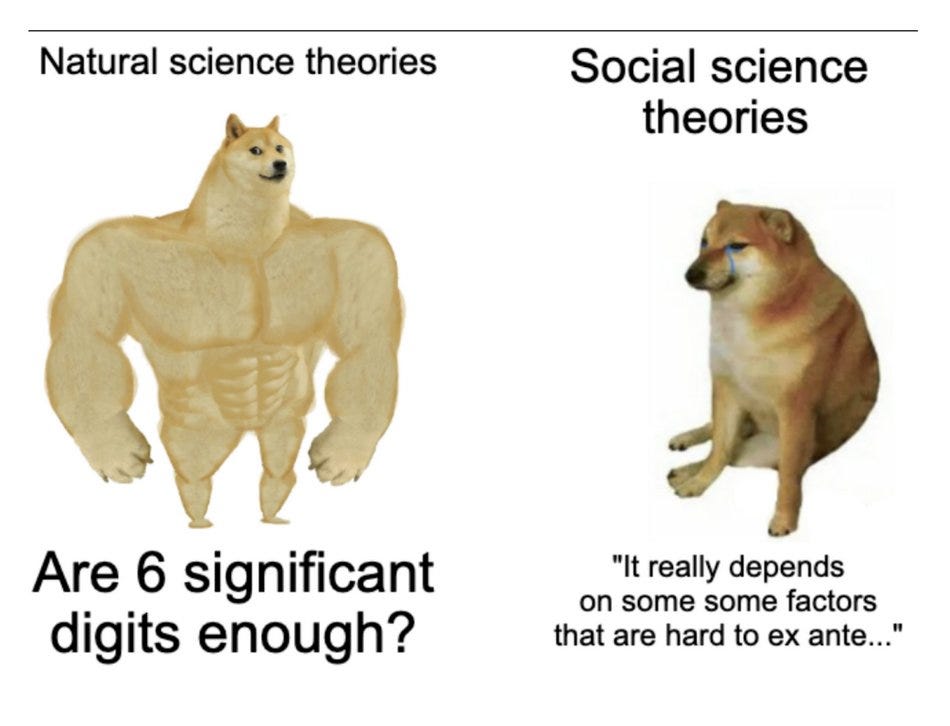 Of course, social science theories face this tension between usefulness and parsimony and so they end up with theories not really up for prediction, at least compared to the natural sciences. There are a lot of reasons of course—one is simply that it's hard to incorporate all the factors that matter. But perhaps the most fundamental is that people are complex. They are nuanced, strategic thinkers. They reason about how others will react, which affects how they will react, which in turn affects the whole system. They think about the future and the past. They have memories and emotions. They can make plans and enlist others, using their mental model of others to help them coordinate. It's all great stuff but it makes predicting their aggregate behavior hard. What you need, for many applications, is a model of humans in your environment that is nearly as complex and subtle as actual humans.